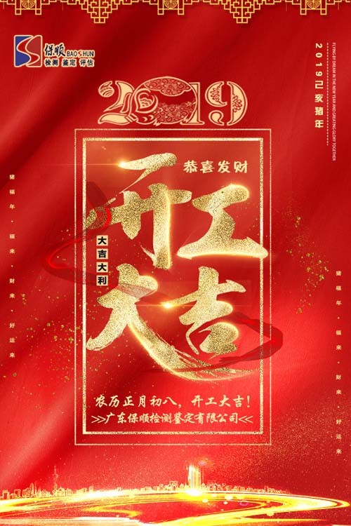 廣東保順檢測(cè)鑒定有限公司于2019年2月12日(農(nóng)歷正月初八)正式開(kāi)工!恭候垂詢!保順檢測(cè)鑒定祝您在新的一年里諸事如意!身體健康!大吉大利!