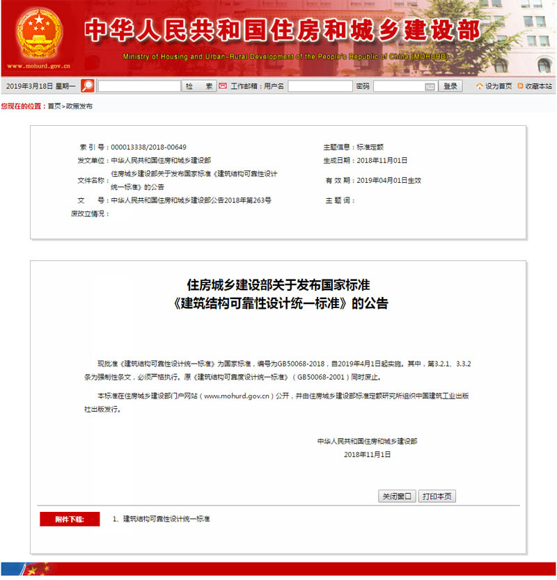 文件名稱:住房城鄉(xiāng)建設部關于發(fā)布國家標準《建筑結構可靠性設計統一標準》的公告