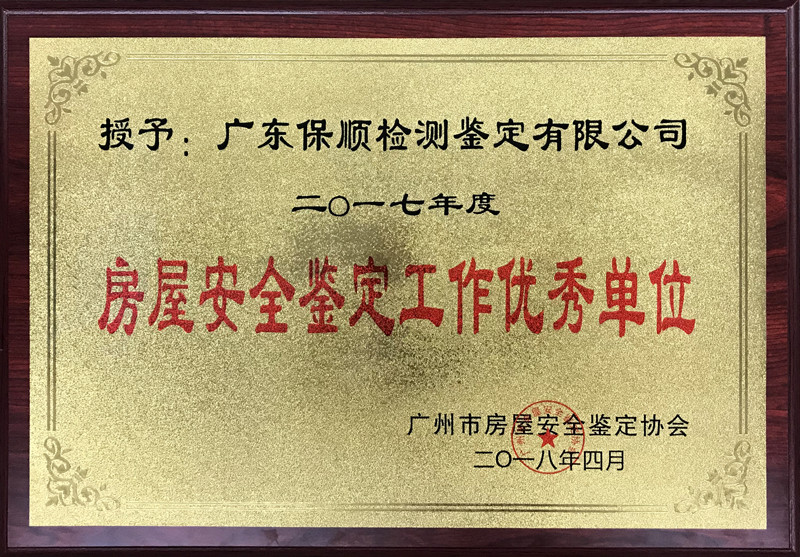 自2009年起,廣東保順檢測(cè)鑒定有限公司多次被授予“房屋安全鑒定工作優(yōu)秀單位”稱號(hào),其中2016年-2018年連續(xù)三年獲此殊榮。我們將以此為契機(jī),加強(qiáng)行業(yè)自律,努力提升和強(qiáng)化自身專業(yè)技術(shù),為提升我國(guó)房屋安全鑒定檢測(cè)行業(yè)的整體水平提供技術(shù)支持和保障。