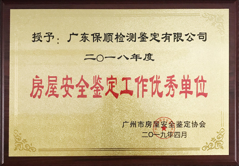 保順榮獲“2018年度房屋安全鑒定工作優(yōu)秀單位”稱號(hào) - 廣東保順檢測(cè)鑒定有限公司