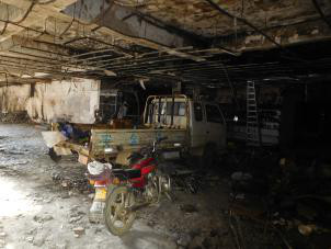 聯華超市(南渡店)2區位于廣西省岑溪市南渡鎮南渡市場一樓,據悉該建筑建于上世紀90年代,大致朝向為坐南朝北。現主體為一層框架結構,以鋼筋混凝土柱、梁及板構件共同承重,以180mm厚磚墻圍護及間隔,層高約為4.0m。該鑒定區域于2018年1月7日發生火災(由火災事故認定書得知),火災造成一層岑溪市聯華超市南渡店內展賣的各類商品貨物、辦公用品等被燒毀;二層南渡至盛順德家具城場內展銷的家具被燒毀,過火面積約800平方米。為了解該鑒定區域遭受火災的影響程度,為建筑結構火災后的處理決策提供技術依據,受岑溪市市場服務中心的委托,房屋鑒定公司廣東保順檢測鑒定有限公司對該鑒定區域進行火災后房屋檢測鑒定。房屋火災后現場照片如下: