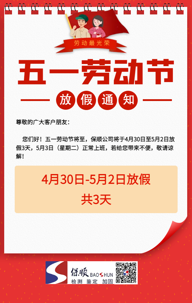 2022年保順五一放假通知 - 廣東保順檢測鑒定有限公司