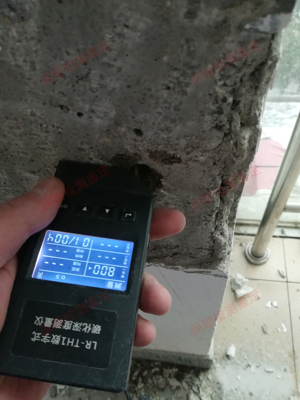 混凝土碳化深度檢測(圖片來源:廣東保順檢測鑒定有限公司房屋檢測鑒定項目現場)